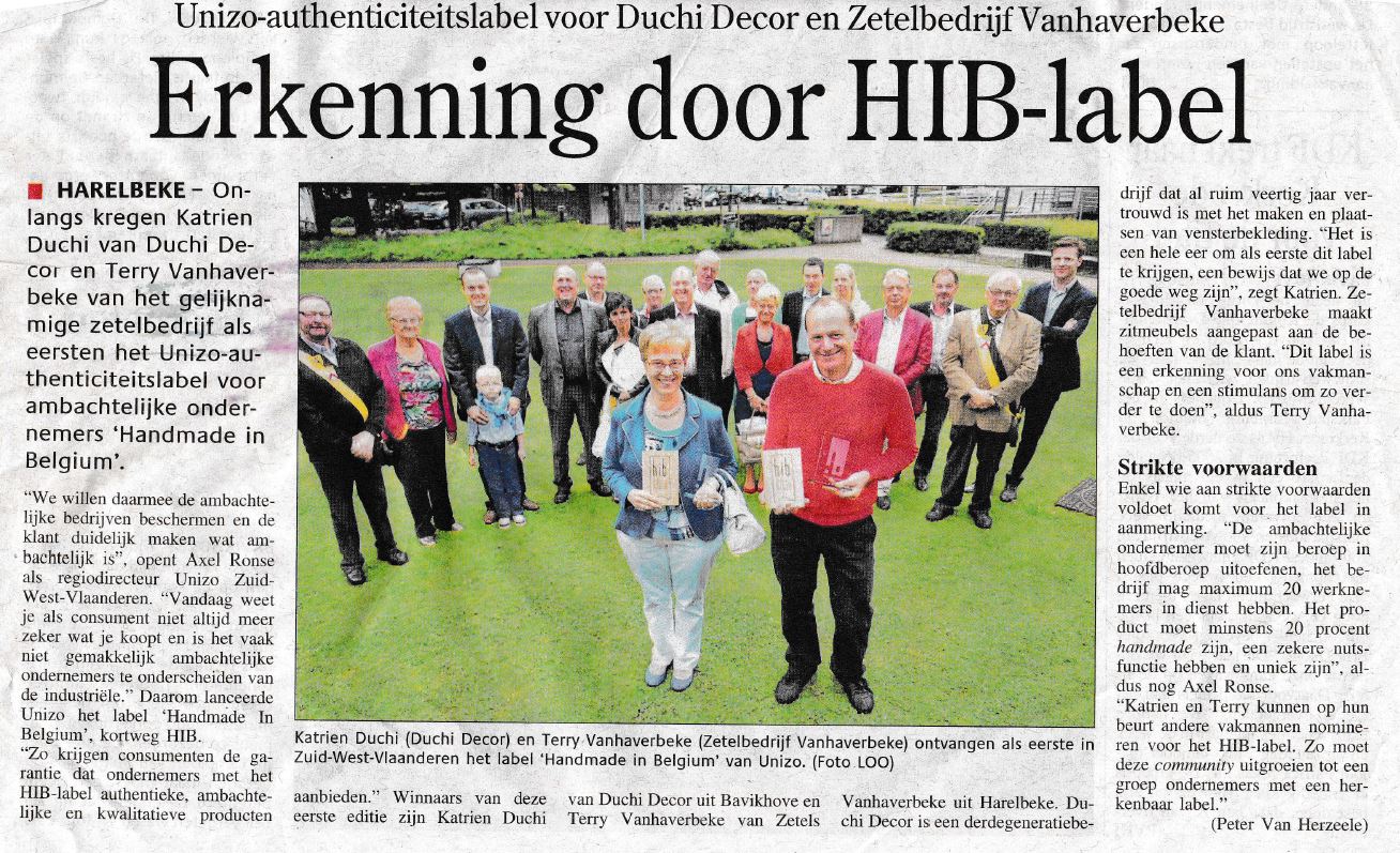 Met het authenticiteitslabel HANDMADE IN BELGIUM wil UNIZO de makers van authentieke en ambachtelijke kwaliteitsproducten in de kijker zetten. Hun producten maken vandaag de dag het verschil voor de moderne consument. Met het HIB-label wil UNIZO de moderne en traditionele ambachtsman of –vrouw verenigen in een community.